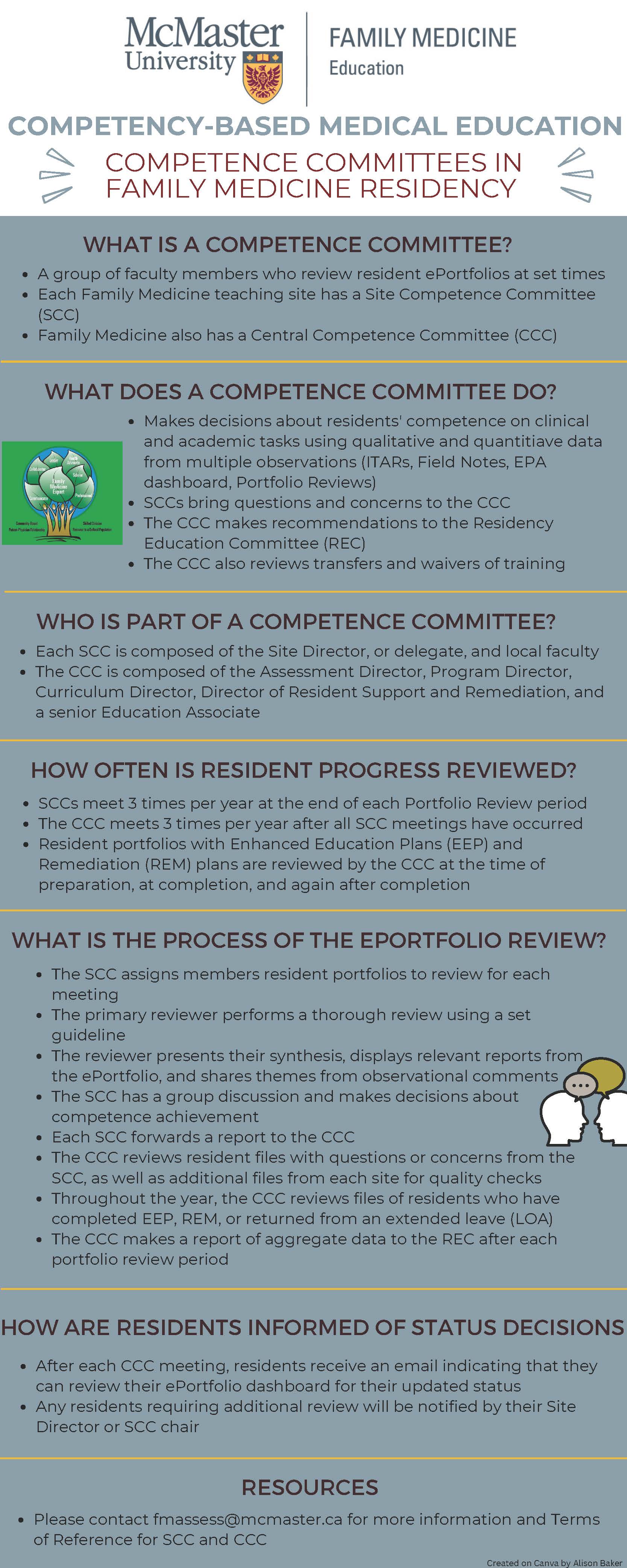 Ever wonder what happens to the Portfolio Review form you’ve completed with your resident three time per year? Each DFM residency training site has a Site Competence Committee (SCC), which is responsible for assessing the progress of residents in achieving the specific requirements of the Family Medicine Residency Program. The Central Competence Committee (CCC) oversees all DFM SCCs. Three key tasks of the competence committee are to: